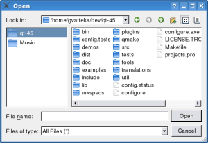 The easiest way to create a QFileDialog is to use the static functions. On Windows, Mac OS X, KDE and GNOME, these static functions will call the native file dialog when possible.
