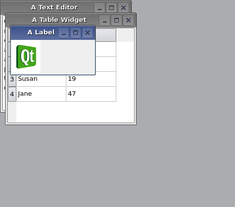QMdiArea functions, essentially, like a window manager for MDI windows. For instance, it draws the windows it manages on itself and arranges them in a cascading or tile pattern. QMdiArea is commonly used as the center widget in a QMainWindow to create MDI applications, but can also be placed in any layout. The following code adds an area to a main window: